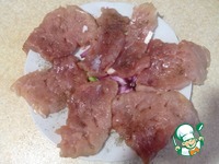 Мясо порезать, отбить, поперчить и посолить. |