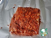 Заверните свиную шейку в фольгу, плотно защипав края. запекайте в разогретой до 160 гр. С духовке 2 часа. Готовую буженину оставьте отдохнуть мин. на 40, потом разверните её и охладите. |