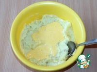 3. Добавить в картофельное пюре взбитый желток, разрыхлитель теста |