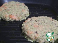 200 гр лосося положить в блендер вместе с брокколи, киноа, яйцом, солью, перцем и песто |
