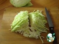 Сердце моем, режем на куски, солим воду по вкусу и варим сердце до готовности. Вынимаем из бульона, бульон процеживаем и далее варим на нём борщ. Режем капусту тонко. |
