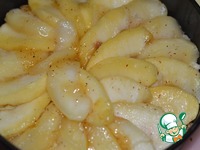 12. В форму выложить слой бисквита, сверху выложить карамельные яблоки. |