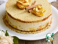 15. На блюдо выложить один песочный корж, (еше раз напомню, что коржи очень хрупкие), затем торт и сверху второй песочный корж. Украсить яблочными чипсами и палочкой корицы. |