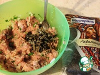 В фарш добавить лук, чеснок, зелень и перемешать. |