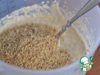 Добавить йогурт, сок лимона, перемешать ложкой. Овсяную муку смешать с разрыхлителем и добавить к смеси. Перемешать. Добавить целые овсяные хлопья и молотые орехи-перемешать. |