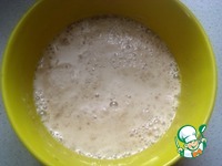 В поднявшуюся дрожжевую смесь добавить часть просеянной муки. Перемешать. Влить молочно-масляную смесь. |