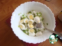 Яйца сварила вкрутую, почистила и порезала пополам. |