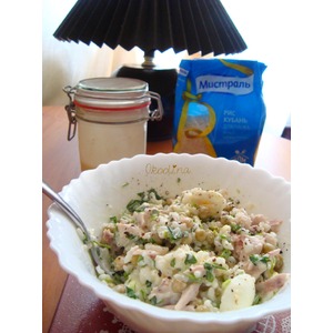 Описание: Салат я сделала из риса и курицы, заправила домашним майонезом- как же это вкусно!!!