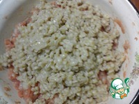 Перловку отварить в подсоленной воде до готовности, остудить, добавить к фаршу, перемешать. |
