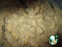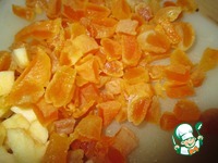 Всыпать нарезанную курагу и яблоки. Перемешать хорошенько. |