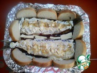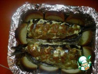 Наше блюдо уложено и теперь мы отправляем его в духовку разогретую до 160-180 град. минут на 30-40. Чтобы не горел майонез сверху можно накрыть фольгой. |