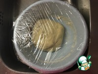 Месить тесто в ручную минут 10. Время замеса на комбайне - 5 минут. Тесто должно получиться эластичным, но немного прилипающим к рукам. |