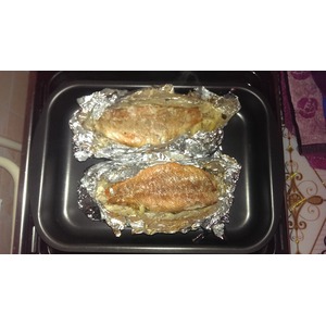 Заворачиваем в фольгу и в духовку на 25-30 минут при температуре 180-200 градусов. Для зажаристого верха аккуратно раскрыть рыбу и поставить еще на 10 минут. |