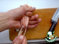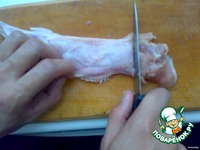 Кожу с мясом снимаем как чулок, срезая осторожно жилки. |