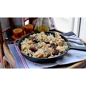 Описание: Рецепт этого плова из журнала Джейми (Дж Оливер). Вроде курица и рис, все как обычно но-финики это было для меня неожиданно в и в то же время очень интересно...