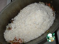 Всыпать тщательно промытый рис, присолить. |