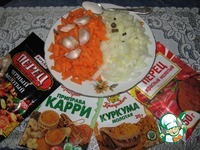 Подготовить специи, сахар, чеснок, морковь нарезать брусочками, лук кубиками. |