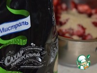 4. Клубнику разморозить, лишнюю жидкость слить, если крупная нарезать не очень мелко, выложить в ковш, добавить сахар, ванильный сахар и уксус. |
