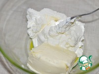 8. Для сырного крема мягкое масло взбить с сыром. |
