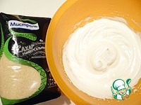 Сначала готовлю бисквит. Желтки отделяю от белков. Белки со щепоткой соли взбиваю миксером в устойчивую пену, добавляю в несколько приемов сахар, продолжая взбивать. |