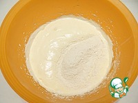 Муку смешиваю с крахмалом и разрыхлителем, просеиваю и добавляю к яичной массе. |