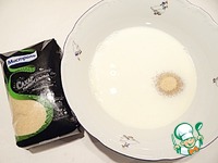 В другой миске пудинг смешиваю с 4-мя столовыми ложками молока, тщательно размешиваю. |