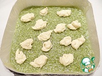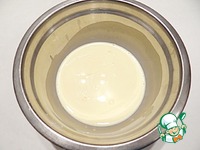 Когда желейная масса начнет схватываться, выкладываю ее на пудинговый крем, выравниваю поверхность. Убираю в холодильник до застывания желе. |