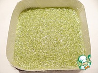 Форму, в которой выпекался бисквит, застилаю пищевой пленкой (я для подстраховки края выложила картоном, потом обернула пленкой). Бисквит помещаю обратно в форму. |