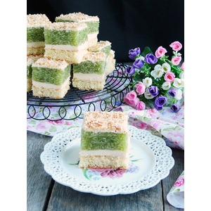 Описание: Нежный торт из бисквита, пудингового крема, яблочно-желейного слоя и хрустящей кокосовой стружки.