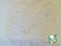 Муку просеиваем, добавляем щепотку соли и масло сливочное, перетираем в крошку |