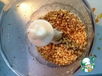 Подготовить верхний слой: нарезать чернослив на мелкие кусочки. Орехи в блендере порубить, но не в пыль!!! Я и чернослив в блендере порубила. |