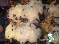 Через 40 минут открываем духовку и на каждый кусочек выкладываем сыр. |