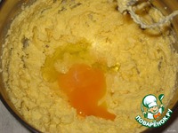 Маргарин растереть с сахаром. По одному втереть яйца, тщательно вымешивая после каждого. |