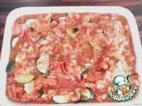 Теперь залить готовым соусом и запекать в хорошо нагретой в духовке примерно 30 минут при 200С. |