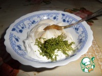 В чашке готовим соус из сметаны, майонеза, горчицы и мелконарезанного укропа. |