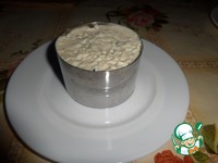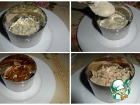 На тарелку ставим кольцо и слоями выкладываем салат : яйца - соус - грибы - кальмар. |