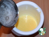 6. Не выключая миксер, влить тонкой струйкой сахарный сироп в желтки, продолжайте взбивать до полного охлаждения. Масса должна стать гуще. |