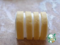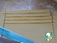 Тесто раскатать в пласт, с помощью линейки и ножа отрезать 4 равные полоски (2 штуки про запас); |
