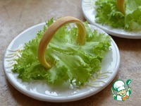 В тарелочки установить полусферы, выложить подушку из салата; |