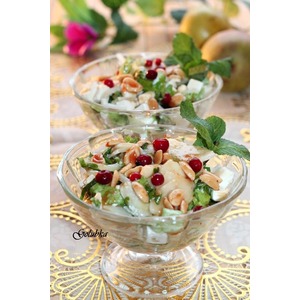Описание: Вкусный салат с брынзой, грушей и карамельными орешками.
