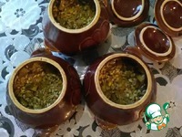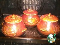 Накрываем горшочки крышками и отправляем в духовку на полтора часа при температуре 150-160 градусов. По истечении времени оставляем горшочки в выключенной духовке еще на час. |