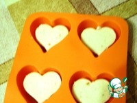 Описание: Валентинов день…романтика, свечи, признания, недосказанность…и – сердечки – много сердечек. Добавим еще? Необычная закуска похожа на десерт, но это легкое и пикантное заливное из курицы - отличная альтернатива заливному мясу. Такая яркая по виду – украсит праздничный стол. И такая гармоничная – за островатым холодным томатным желе идет нежное куриное суфле с легким грибным привкусом, а в серединке – яркая фруктовая нотка с неожиданным обжигающим послевкусием чили перчика. Горячая штучка!