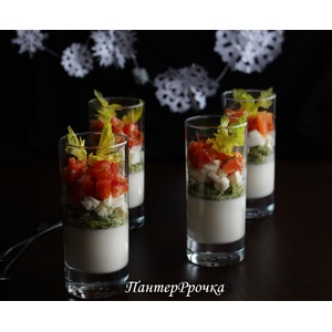 Описание: Очень красивая, эффектная и вкусная закуска. На мой взгляд, все ингредиенты идеально дополняют друг друга и создают гармоничное сочетание. Нежный сливочный слой подчеркивает пикантность укропно-сырного соуса и сочность помидоров.