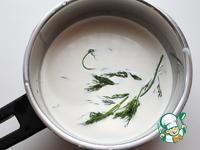 25 г укропа промыть, залить сливками и посолить. Поставить на огонь и нагреть, не доводя до кипения. Снять с огня, накрыть крышкой и дать постоять 3-5 минут. |