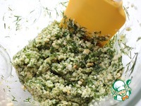 Оставшийся укроп положить в блендер, добавить орехи, твердый сыр, чеснок и 1 ст. л. масла. Тщательно измельчить. |