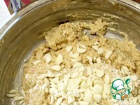 Добавить яйцо и порезанную белую глазурь и перемешать. Должно получится мягкое тесто, не липнущее к рукам. Если липнет, то добавьте понемногу муки. |