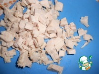 Отварную куриную грудку нарезать. |