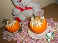 Апельсины вымыть, обсушить, срезать с них крышечку. Вынуть мякоть апельсинов и подготовить корзиночки для салата. |