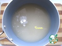В будущую граниту добавим коньяк и лимонный сок. Дадим смеси остыть при комнатной t, далее затянем пищевой плёнкой посуду и поставим в морозилку для замораживания граниты. |