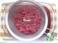 Получившуюся смесь протрём через сито, что бы избавиться от малиновых косточек. |